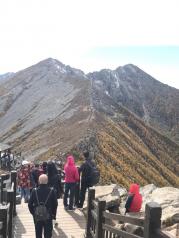 太白山非常值得一去哦,坐缆车到天圆地方后感觉特别冷,s然后租了一觉件大衣,押金100,租金50,隔夜还70。从天圆地方到小文公庙的路还比较好走,小文公庙到大文公庙就很难走了,因为海拔急剧升高,走两步就得休息一下,估计是高原反应的表现。从大文公庙到大爷海一路走的也比较辛苦,基本都没停过,全程大概花了六个小时。到大爷海简直累瘫了,夜宿大爷海等待第二天早上看日出,住宿的大概有二百人左右,第二天早上五点多就有人陆续出发看日出了,一路冬风特别大,感觉有八级的样子,山上特别冷,拍个照手都要冻僵了。下山还比较顺利,从大爷海到天圆地方大概花了四个小时,直接坐缆车下山,回家。总之,不虚此行。
