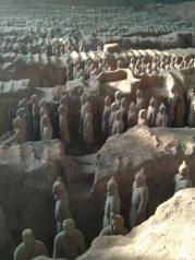 兵马俑,刚进入1号坑的时候感觉比较震撼,秦俑的平均身高都比较高,宏伟的感觉让人瞬间对大秦帝国浮想联翩。走到后面看到埃及博物馆,里面有陈列着古埃及时期的物件以及木乃伊,还有人形的彩绘木棺, 还有一个埃及人的风干的黑色头颅,不虚此行。