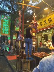 回民街可热闹了,有好多好多小吃,但是逛多了会发现也就那几样东西,红柳枝烤肉,酸奶,花生酥,肉夹馍,酸梅汤等等。不过回民街里一个高家大院可以进去听听老腔,看看皮影戏,没见过的就当长知识。回民街走啊走啊会到一个叫洒金桥的地方,据说老西安人才知道的美食街,比回民街有吃头的多