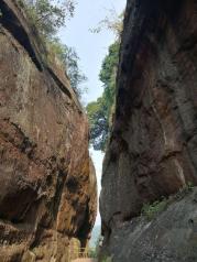 此行来仙门奇峡自驾游,登上仙门,上山台阶888级,下山仅666级,没有登上竹筏漂流,3小时轻松游玩;期待下回更多朋友一起组团来玩一整天,再欣赏他们的八仙宴!登上仙门,上面就是仙人桥,是西京古道之天生桥;昨天下雨,很遗憾,划不了竹筏漂流,也没见龙凤朝阳(天下第二),刚好在灵霄宝殿避避雨!