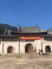 云门寺在韶关乳源县,从广州自驾车过来大约两个多小时,天气不错,微微凉风,蓝天白云,景色也很不错哟…… 云门寺门票¥5元一位,70岁以上老人可以免票,有大型的露天停车场,并且是免费的。 11月份去的时候银杏已经黄了,金灿灿的一片;枫叶也陆续红了,有深红的,有微红的,有黄黄的,还有微黄的,色彩斑斓的,很漂亮……