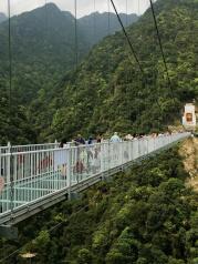 云门山自然风景区位于韶关市乳源县,在在韶关市区开车过去不到一个小时的路程。我们是清明节假期过去玩的,人比想象中的要少,还是需要排队坐缆车。 提前网上购买套票,包含门票、往返缆车、玻璃球,还有海洋馆。 先在入口处坐观光车到缆车出发点,坐缆车上去再去走玻璃桥,玻璃桥需要勇气哦。走完玻璃桥再之后就是爬山,景色秀丽迷人。 挺适合过去放松,走走看看风景,还有缆车坐,挺好的。