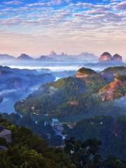 中国红石公园——丹霞山,是广东四大名山。这里主要景点长老峰景区和阳元石景区。韶关东有景区到丹霞山,每10分钟一班车,很方便。周围也有很多住宿的地方。我们花了一天时间游览景区,上午去阳元石景区,先去看阳元石然后登上最高处嘉遁亭,然后从细美寨下山。非常幸运到了山顶本来是下大雨的,彩霞出来了,而且是双彩虹,看到了日落也看到了日出,