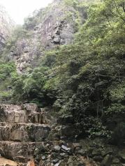 我们是自驾游乳源大峡谷,导航没毛病!早上有点微雨,气温降了不少,大峡谷一向是长楼梯高梯级,加上比较滑,所以都比较小心。空气清新,树木翠绿,小溪水清澈无比,瀑布一样的壮观,还有一点雾气,犹如仙境。天梯看不到尽头,之前被大石头砸塌的房子重新建了一间!