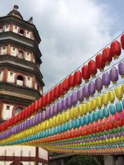 南华寺里香火很旺,人气满满,寺内鲜花灯笼装饰得非常别致,更有三尊佛祖真身,很厉害哦!值得一拜!还有免费的水果,随缘而取。