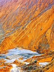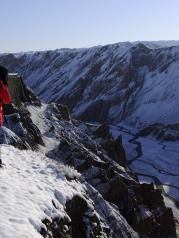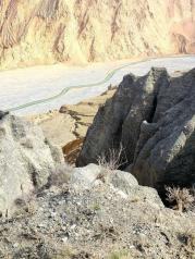 三月去安集海大峡谷,喜欢拍照的可以去哦,目前这个景点免费,没有班车前往,从奎屯打车去120元,会还价的可以再杀杀价,应该还有还价的余地, 大峡谷很深,落差200多米,我去的时候遇上前一晚下雪,峡谷一片晶莹,背风没有积雪处露出红色土层,当中午化雪后又是另一番景象,应该到6月份草皮绿了以后色彩就更丰富了,现在山坡上长着散发着特殊香味的小草,也不知道叫什么名称。