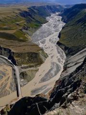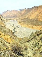 安集海大峡谷河流上游为巴间沟,发源于依连哈比尕山主峰,在通古特附近冲出天山峡谷,如脱僵之马一泻千里,从而在天山北坡下形成了规模宏大的山前冲击扇
