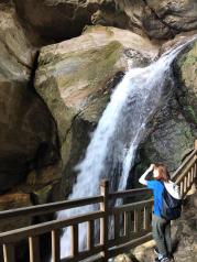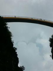 天燕是个非常大的景区,我们感觉最吸引人的就是彩虹挢和燕子洞了。两座大山顶部横亘出一座人造七彩大桥,确实想象丰富。有风时,站在上面还能感到阵阵震动,让我略有心惊!而燕子洞深藏大山,硕大的洞口让人目瞪口呆,洞内还有暗河,但林区为了保护燕子,洞里并未安装灯光,借助手机亮光沿着暗河就能往洞底走,走不远就能听到上方叽叽喳喳的声音,到这儿可以调头出去了,再往里去还未开发,我们借此声就算感受了燕子洞的特色!