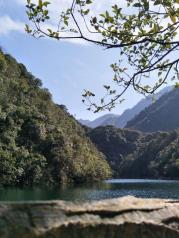 徽州大峡谷,拙朴天成的原始生态风貌。走过源芳大峡谷漂流码头摇摇晃晃的钢丝桥,沿栈道而上,就登上水库大坝,一汪碧波的湖水,两岸倒映的树木清晰地印在湖面上,人走,树移,水荡,青山绿水在这里与游人逗乐