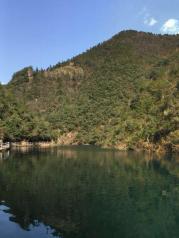 徽州拙朴天成的原始生态风貌。走过源芳大峡谷漂流码头摇摇晃晃的钢丝桥,沿栈道而上,就登上水库大坝,一汪碧波的湖水,两岸倒映的树木清晰地印在湖面上,人走,树移,水荡,青山绿水在这里与游人逗乐