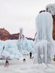 冬至出差,来到河北石家庄沕沕水景区看冰瀑。 冰瀑层层叠叠,气势磅礴。冰柱、冰笋、冰凌、冰花、星罗棋布,形态各异,贯穿整个景区。 但是晚上太冷了,没有出去看冰灯。据说晚上的冰灯也超美,童话世界不夜城。
