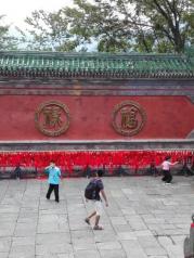 复真观应该是上武当山的首站了吧。可赏性很强,整个建筑是依山而建,因此有高度差,蜿蜒曲折。尤其是里面著名的九曲黄河墙,红墙,曲曲折折的,选个人少的时间,拍照效果非常的好。可惜,去的时候一柱十二梁被关着,没有看到。 外面有很长一段台阶,两旁是一片树林,种的梅花桂花等不同植物,不同季节去有不同的风景。