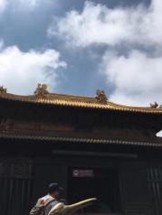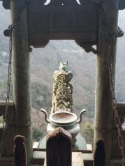 武当山金顶地方很小,仔仔细细看,认认真真摸,围着金顶转了好几圈,金顶的游程也差不多了,又开始下雨了,真感叹老天爷这么眷顾我们,在我们登上金顶最好的地点最好的时间,拨开云雾让我们看够武当的美景,在我们离开的时候再次将武当的美用雨雾包裹藏于天际,我感觉一定是我们一路走来心诚则灵所致。