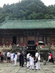 武当山在明朝成为了皇家道场,而复真观就是道场的起点。景点游玩了约半小时左右 。九曲黄河墙,弯曲的道路旁是红墙绿瓦,皇家宫墙与道教建筑的结合。五云楼则被木制的一柱十二梁撑起,看过墙上的楼体设计图,立刻想起那句“充分体现了古代劳动人民的智慧”。