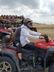 上午8:30准时从市区出发,驾车直奔沙湖而去,一路顺利无堵,约一个小时到达沙湖东南门。 沙湖旅游区距银川市约50多公里,位于平罗县境内的西大滩。据导游讲,此处水偎沙,沙依水,水沙相映成趣,湖水碧波荡漾,沙海金浪起伏,因其独特优美的自然景观而被选为全国5A景区。 10点左右入园,玩到下午2点,总体感觉三个字:热、美、嗨。