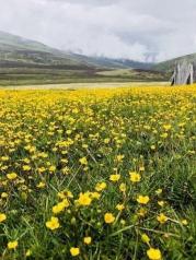 泉华滩是个钙化池,景区门口有藏民收门票,要价25一人,被我们降价到20一人。泉华滩有“小黄龙”之称。和黄龙一比规模真的是小,但相比于黄龙钙化池的只可远观,泉华滩则显得亲民多了。你可以走进它,更可以触摸它。池水没有黄龙绚丽但依旧多彩缤纷,但池子里点点的石花,依依的水草甚是可爱。可惜下午的天气又开始变阴郁了。若是晴天,景色应该会更美吧!