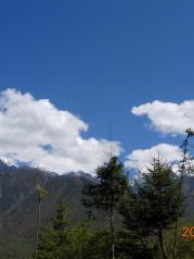马尼干戈一路上的景色啊,看都看不完,除了藏区特有的独具特色的寺庙,藏居,风马旗之外,还有那令人心旷神怡的蓝天、白云、高原、草甸、雪山、雾松。特别是那蓝天,那么蓝,蓝得纯粹,蓝得高远,蓝得让人心弛神往。