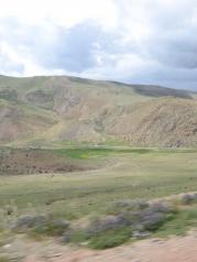 毛垭大草原,路两边是广袤的高原牧场,深深浅浅的绿色在草地上绵廷起伏着,远处是连绵的雪山,在蓝天白云的映衬之下,高原牧场的景色非常美丽。离天近了,云彩也低了。一片博士帽形状的白云在我们的前面飘荡。