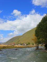 新都桥十里长廊是新都桥镇外10公里的风景长廊。平坦的道路,蜿蜒的小河,夏季漫山遍野的野花,秋季金黄的杨树林,这里就是摄影爱好者心中的圣地。