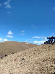 卡子拉山 高山上除了草甸,完全看不到树木,可视野却是极其的辽阔,天空上那一层层又厚又白的云朵,就像是伸手可及的棉花糖;远处的雪山,也似乎和视线是水平的了。 在卡子拉垭口,空气是稀薄的,大风是猛烈的,风景是美丽的。