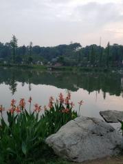 环绕浣花溪公园的清水河非常美丽,大红色的山角梅开着艳丽的花果,早晨乘坐公交在送仙桥站下车后,尽管天下着雨可清水河的美丽风景仍然吸引着我拿出手机拍了几张,
