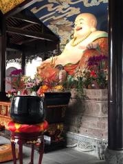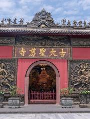 大慈寺位于成都市中心,与繁华的春熙路相邻,周边商业繁华(与上海的静安寺一样),里边宁静的世界与外边繁华的世界完全不一样,很多人都不知道原来里面有新世界。寺院已有千年历史,屡毁屡建,现有建筑都是近代重修,规模宏大,香火鼎盛。