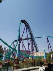 成都欢乐谷地处西三环。交通还算方便,一票制非节假日去玩还是不错的,就是停车费贵。去的时候排队的人不多,基本上一个项目只要10分钟不到就能排到。一次性可以把5个过山车全完一遍,很爽!