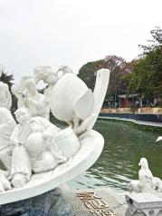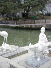 浣花溪公园是浣花溪历史文化风景区的核心区域,位于成都市西南方的一环路与二环路之间,北接杜甫草堂,东连四川省博物馆,去年进行了升级改造,景观提升,注意中国传统文化的传承,增加了不少的诗歌石刻和小品点缀,八仙过海就是其中之一,位于摸底河与浣花溪两河交汇处,用这个典故比喻那些依靠自己的能力而创造奇迹的事,也有“一帆风顺,万事不难”的美好寓意。