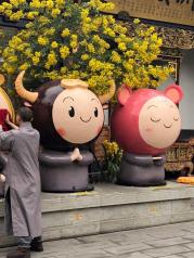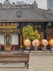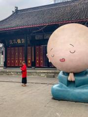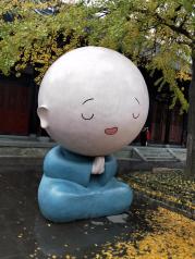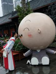 大慈寺引入了14尊巨型卡通和尚,全部身穿灰色的僧衣,其中有两座是人形的小和尚,而其他12座是卡通的12生肖和尚,十足卖萌。很多游客只为卡通和尚而来,无心拜佛上香只为和卡通和尚拍照,放眼全国寺庙,成都的大慈寺算是开启了大慈寺卖萌的先锋了。