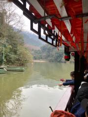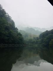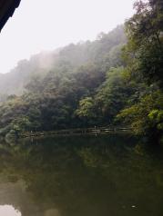 月城湖湖不大,湖上有摆渡船,一个人5块,15分钟一班。船上没有控制室,很好奇怎么开的,后来才发现两头有钢索拉着过湖的。走路绕过去大概不到10分钟吧,大船坐3分钟,导游说这儿是青城山风水最好的地方