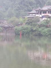 走过上山的栈道,到达月城湖,由此可前往索道、上清宫。月城湖群山环绕叠嶂,林木茂密葱翠,给人以幽深清静之感,湖中矗立一石碑,上书月城湖,在乘船处有一观景台,可观月城湖景色。
