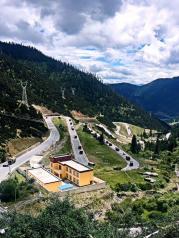 大渡河蜿蜒蹦腾在川西高原的群山之中,亿万年的时间冲刷出了宽阔雄伟的河谷,川藏线就是沿河谷而建,时而盘山而上入云,时而盘旋而下远去。