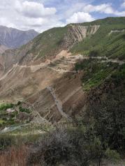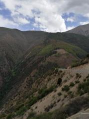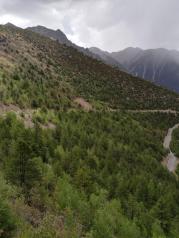 觉巴山并不高,垭口的标高也只是3940米,但由于澜沧江千百年来的深深下切,使得江岸壁立千仞,一派荒凉与坚硬,给人以山高谷深的感觉。这里是横断山区的著名险段之一,30公里盘山路,近2000米的相对高差使觉巴山成了川藏线上最难爬、最费时的一座山,公路在绝壁上延伸,既没有护栏也没有路标,不少地方都是紧靠山体硬生生地开凿出来的,上依绝壁,下临深渊。川藏线虽然号称天险,但最危险的地方其实只有几处,比如排龙天险、通麦天险和怒江天险。与这几处名声在外的天险相比,觉巴山的知名度确实不高,只有身临其境的人,才知道这个没有名气的天险与其他几个名声显赫的天险一样,同样让人望而生畏。