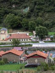 道孚民居,其独特的建筑风格以及内部精致的雕刻,堪称藏族一绝,远远望去青山绿水间点缀着错落有致的屋舍 ,宛若高高低低的琴键。叩响了山谷间的优雅乐曲,白墙、红壁 、花窗、滴水檐,每一处都恰到好处,每一处雕花都诉说着一个小小传说