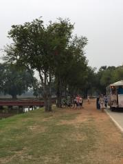 在素可泰历史公园旅游相当的悠闲,适合半路,经过花半天的时间就可以游玩了,看到有一些韩国团是从曼谷过来,其中游览的一个景点之一。公园里面的那片荷花池很美,最适合作为拍照的前景,把一片的佛塔作为后景。拍出来真的好美。园区里面可以乘坐游览的车。最棒的还是在门口租用自行车。