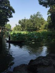 拙政园不错,新中国成立前,园林破败,解放后政府开始保护、整修,1952年对外开放,1989年整修完工。园林以水为主,岸边构筑景点,自然、典雅、精巧、秀丽;西花园的与谁同坐轩和后面的借笠亭叠加一起看有些像过去的官帽,令人称奇。