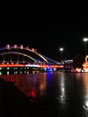 运河唐人街不夜城位于唐山市丰南区,占地面积很大,当地人称之为北方的秦淮河。这是一座后修建的免费开放式景点,依运河而建,确实是有一些仿秦淮河的风格建造但总感觉还是差了许多,加之冬天北方的寒冷天气使其略显人气不旺。但总体来说在北方能有这么一处景点还是很不错的。