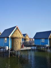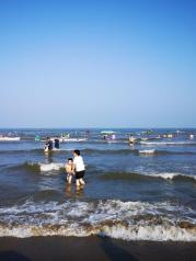 乐亭月坨岛离北京不远,周末可以去玩玩,从北京开车三多个小时可到。自驾车需要停在三贝明珠码头停车场,停车20元不限时。然后买门票+船票坐船去岛上。这天气轮渡船开着空调和窗户也很闷热,好在坚持一下,二十分钟到岛上。岛上有一条美食街,海鲜烧烤为主,还有不同的酒店,特色还是小木屋,周末价格比较贵,面积不大。酒店有小的游泳池和温泉池,海边浴场可以游泳,人不是很多,海水还算干净。晚上等都亮了,天也凉快点了,各个饭店坐满了人,喝啤酒吃海鲜,夜景很美。