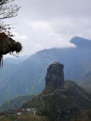 节假日期间人很多,早上要早点去梵净山,我们去的时候正好碰上山上下小雨,后来就慢慢起雾了,若隐若现的别有一番风味。建议上山穿厚一些,上午还是有点凉的。