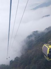 住在梵净山山下景点服务区,淡季游客较少,买的套票260元/人,含景点门票、上下索道、往返观光车的费用。在山下雨雾蒙蒙,能见度不足百米,坐在缆车上心里一直忐忑不安,心想这次旅行泡汤了。快到山顶时,人品大爆发,天气有放晴的节奏,金顶上的建筑都能看清,太激动了,就是风有点大。景色是绝无仅有的美丽,印象深刻。