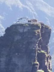 登梵净山,绝壁凿阶通天路,虫鸟清鸣奏梵音, 烟笼武陵灵光透,踏至半山气语绝。 为洗心尘登金顶,不惧汗浸湿衣衫, 拈花细洒般若泉,燃灯焚香叩天神。