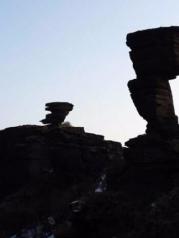 梵净山多雾,雾大的时候,能见度不超过10米,那时候就没有什么意思了。所以要来梵净山来,首先要关注天气,最好是晴天或者多云的时候来。 如果天气不错,建议第一天到山下的酒店住一晚上。我们住的是凤德客栈,老板人很好,我们的一个双肩包坏了,她还借了我们一个,做菜也特别好吃。第二天的时候,我们大概6点50出门,走到售票厅大概7点十分,这时候基本上没有什么人。我们买的是双程的缆车,假设体力不错同时时间不紧,可以试试爬山,爬到金顶大概需要5-6小时吧,这时体力消耗会非常大,最好坐缆车下山。 下了缆车,不妨往蘑菇石和老金顶方向走。我们去的比较早,太阳刚刚升起来不久,天边的金光透过厚重的云层,映着远处的群山,其