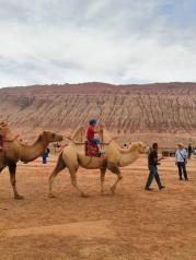 柏孜克里克千佛洞,老实说,千佛洞的佛像基本上丢失光了,只剩一些残垣壁画。但是千佛洞旁边有骑骆驼的活动,上下山来回100元,感觉挺值得体验下,赶骆驼的人拍照技术了得,很会跟我们安排背景和pose拍照片
