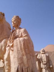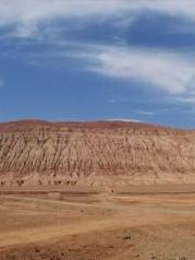 三月来高昌古城游玩,新疆的路修得真好,都是快速路,风驰电掣般地行进。眼前闪过一排排白色的风车群,闪过了王洛宾歌唱过的达阪城,进入了吐鲁番盆地。脑袋一阵阵发蒙,导游告诉我们这是海拔太低的反应。休息片刻,就去参观高昌故城。汽车继续在空旷的戈壁沙丘中开辟的高速路上奔驰,不一会儿跃入眼帘的是一片浅红色的山峦,山的颜色的确是红色的,寸草不生,山的褶皱波浪起伏。这就是火焰山了,荒芜的红色,起伏的褶皱,燥热的天气,恍惚中,无数的火焰在我眼前跳动。因为这里实在太热,我们没有停留多久,就又启程继续前行,赶在太阳落山之前来到了高昌故城。