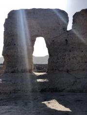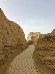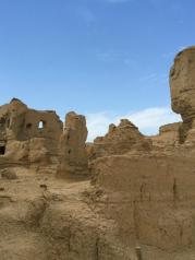"白日登山望烽火,黄昏饮马傍交河",交河故城位于吐鲁番市以西13公里的一座岛形台地上。因河水分流绕城下,故称交河,最早是西域36国之一的“车师前国”的都城。交河故城是一个奇妙的、向下发展的城市。整座城市都是从高耸的生土台地表面向下挖出来的,最深的有现在的三层楼高。这种建筑方式被称为“减地留墙”,中国国内仅此一家,国际上也罕见其例。交河故城气势恢宏,凌峻险绝。它是迄今世界上最大、最古老且保存最完整的生土建筑城市。