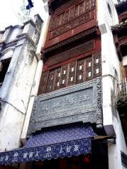 屯溪老街沿江而生,一眼望去,两旁的店铺大多出售砚台和茶叶,还有随处可见的黄山烧饼。是一条非常有韵味,古色古香的老街。 屯溪老街上有好多店铺是售卖石雕,砖雕之类的,颇有特色。 这是一条非常具有徽州特色的街道,值得细细品味。