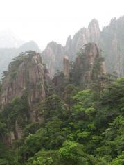 黄山初六那天因为带着小孩,磨磨蹭蹭一直到早上7点多才去换乘中心,正赶上上山高峰,也只排了一个小时多一点就坐上了索道车,随着车子的慢慢上升,美丽的雾松一点点展现在我们面前,虽然有时下着小雨但一点也不影响我们的心情,毕竟是我们第一次看到雾松,一路大惊小怪的,哇哇个不停。我们是从云谷这边上山的,避开玉屏的好汉坡是正确的