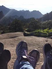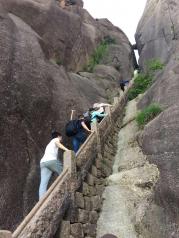 黄山一路上奇松怪石,云里雾里,景色很美很壮观,途中经过了北海、飞来石、光明顶、迎客松等。建议大家下山时还是座玉屏索道下来吧,要不腿肚子真受不了,当时就是想下山时看看风景,结果没什么可看的还累的不行。尤其是体力差的务必座索道,重要的事情说三遍。旅途很长多喝一些功能性饮料,到山脚下时有位徒步下山的游客累的浑身痉挛,手脚抽筋。