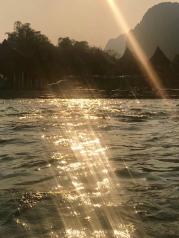 万荣、南松河畔,夜色朦胧、热气球在头顶缓缓飞过。河边一溜的茅草房、苇席而坐、一瓶虎牌啤酒、看着周围的人戏水、游泳、皮划艇顺流滑下...在异国他乡感受一份不同的悠闲时光!