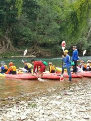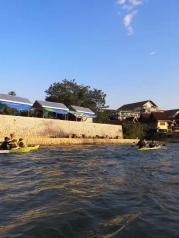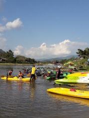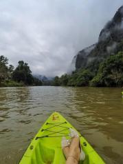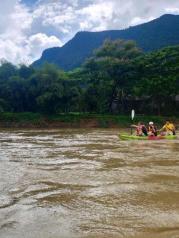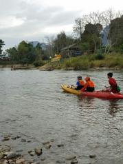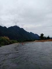 老挝万荣的南松河,每天有很多游客坐着轮胎顺着河漂流,更多的是划kayaking沿着河从上游向下游漂流。